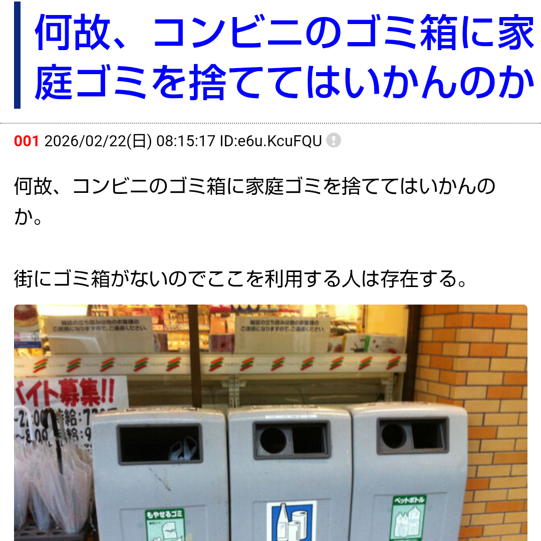 | 002 | 名無しさん | 2026/03/27(金) 16:58:01 | デカいゴミ箱を置かないのが悪い | 画像 |