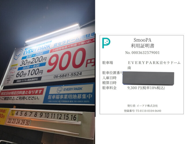 24時間毎900円って書いてあるのに、特定日の記述が離れた一番下の看板に小さく表記。