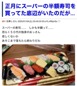馬刺しも食ったことないのに半額の寿司を買わない主義(大笑い)