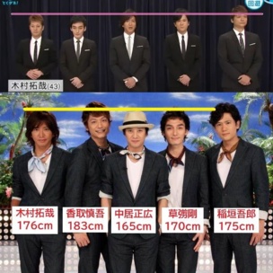 中居は厚底ブ~ツナシ、木村が厚底(恐らく10cm程)で高く見せてたはず