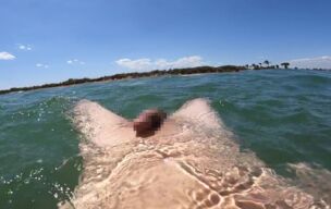 沖まで泳いで、勃起を解消するには、自分で処理するしかないって気づいた。誰も見えないようにさらに沖まで泳いだ。