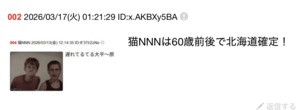 猫NNNは北海道住みの60代らしいぞ。