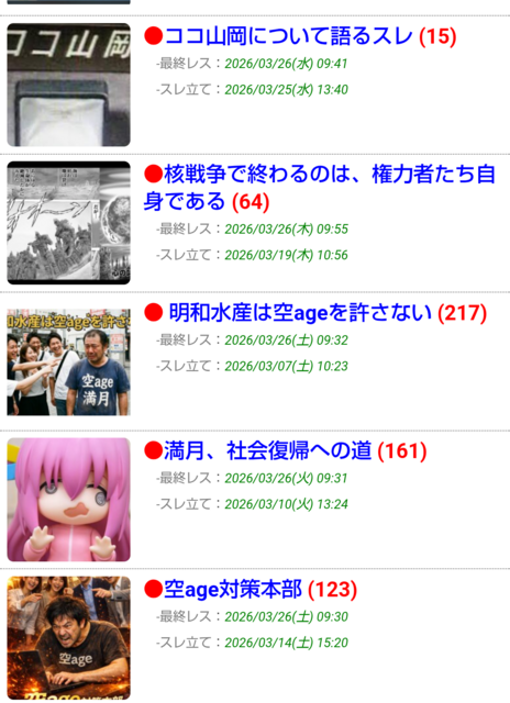 常連荒らしのスレが上位を占拠