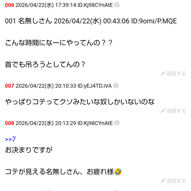 スレッドタイトル:コテ登録者はミジメ人間