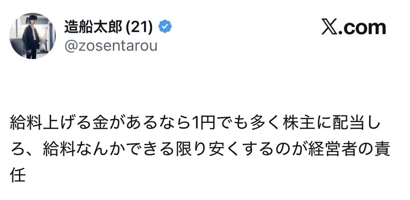 | 001 | 名無しさん | 2026/01/15(木) 10:30:47 | 実は会社は社員から搾取してるのだと! | 画像 |