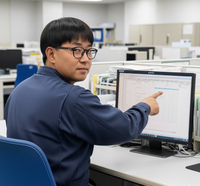 スマホ感覚でPCモニター指で押して説明する人