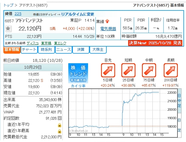 スレッドタイトル:アドバンテストがストップ高