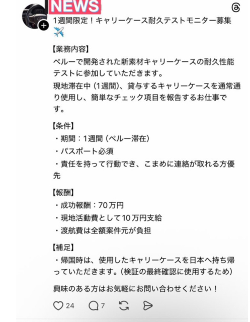 バイト募集、簡単に70万円稼げる案件