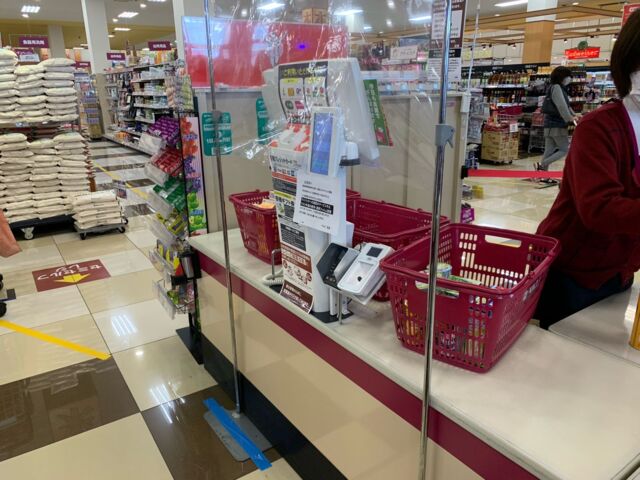 買い物する時に3つのレジがあります