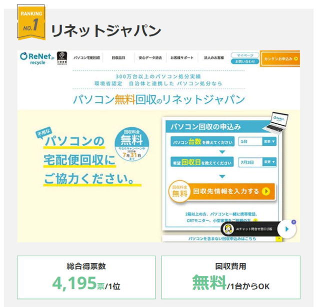 パソコンの無料回収業者