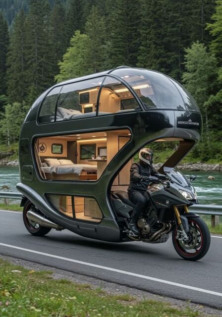 普通自動車サイズの寝泊まりが出来トイレや風呂がついている車が理想かな。